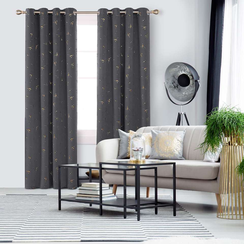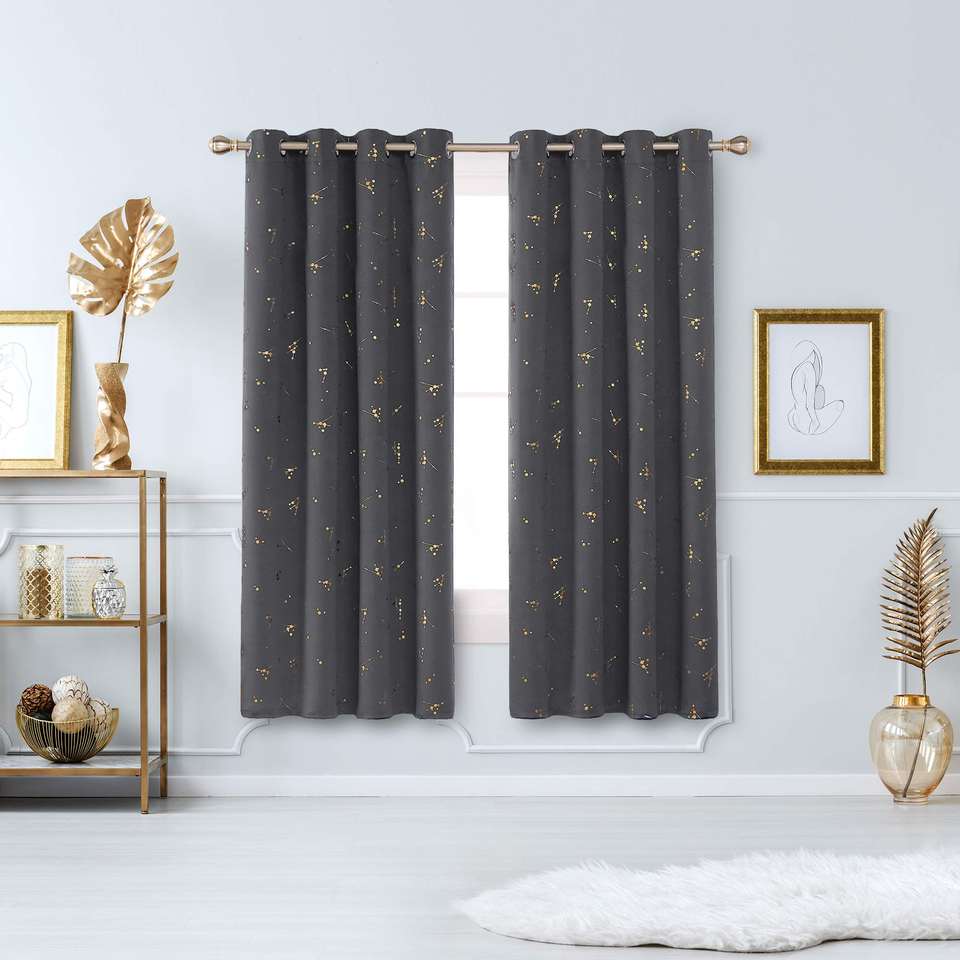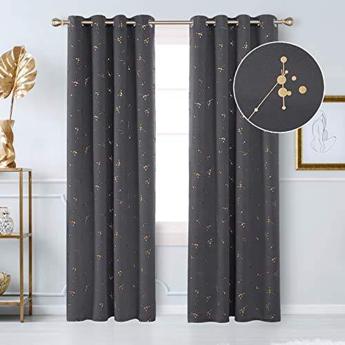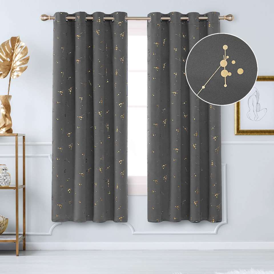 Fashion Gold Constellation Printed Curtains Thermal Insulated Curtains,Super Soft Grommet Blackout Curtains for Kids Bedroom