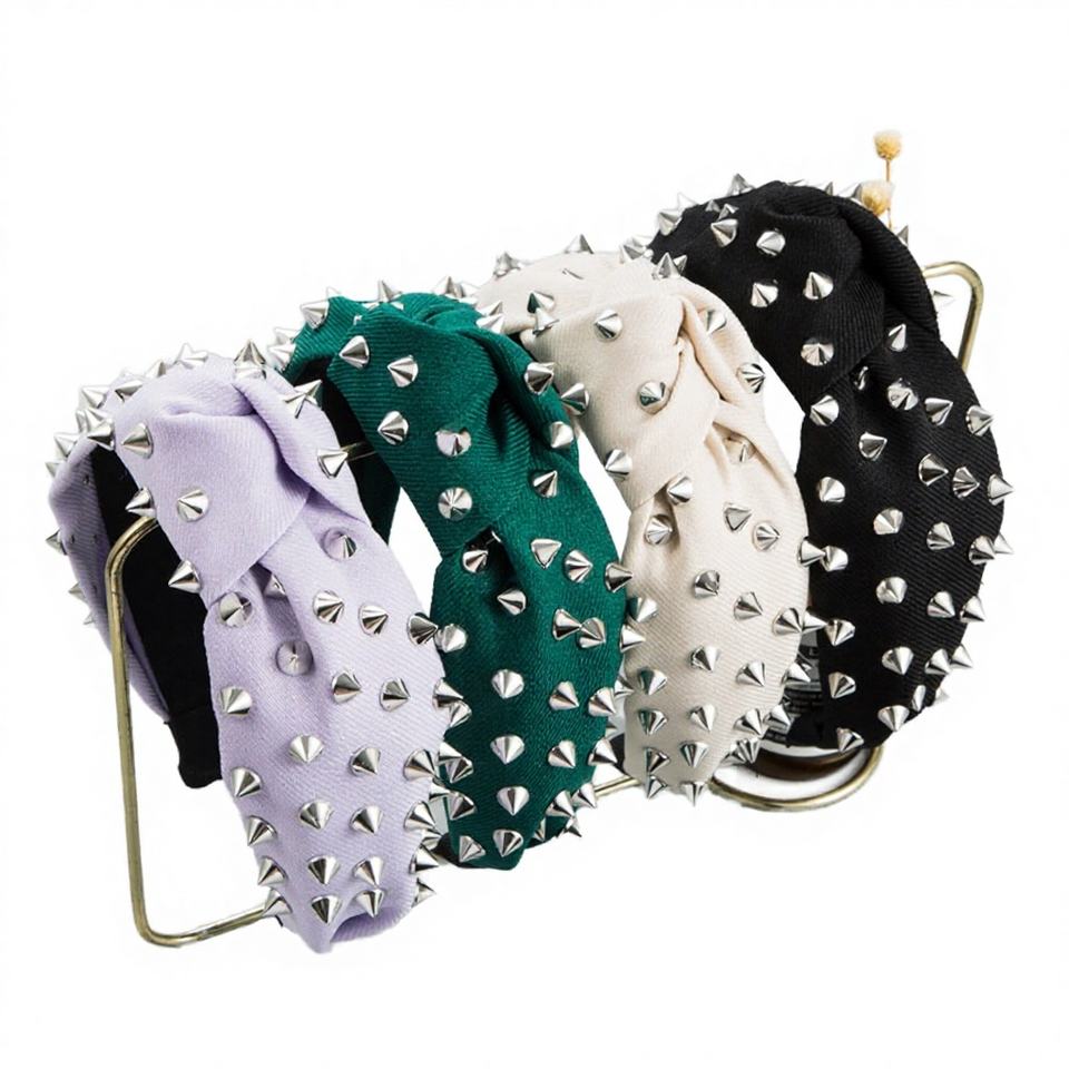ที่คาดผมแฟชั่นคุณภาพดี สีลูกกวาด สไตล์เรโทร แบบผูกปมไขว้ ประดับคริสตัลและหมุดโลหะ สำหรับเด็กผู้หญิง ยืดหยุ่นได้ดี