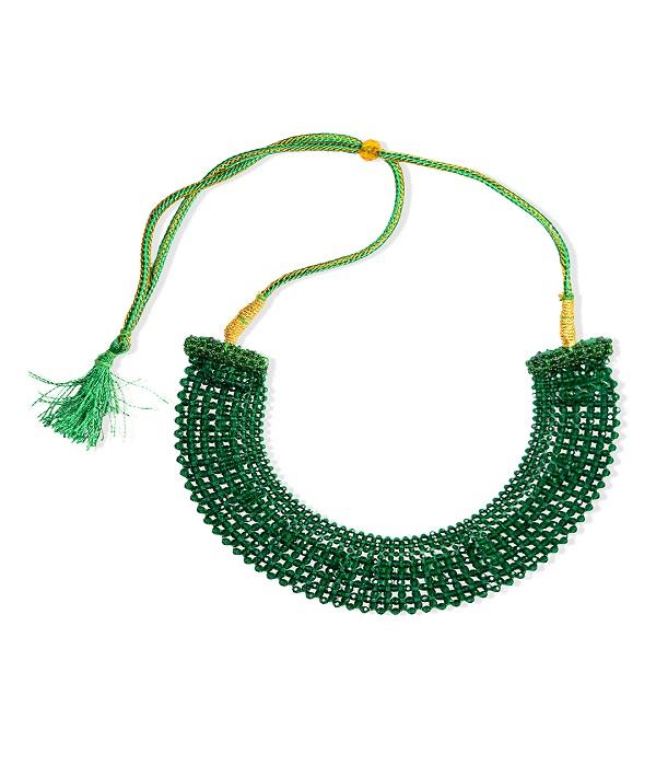 สร้อยคอทำมือประดับลูกปัดสีเขียวสำหรับผู้หญิง สไตล์โบฮีเมียน เครื่องประดับแนวชาติพันธุ์ เหมาะสำหรับงานเทศกาลและงานปาร์ตี้