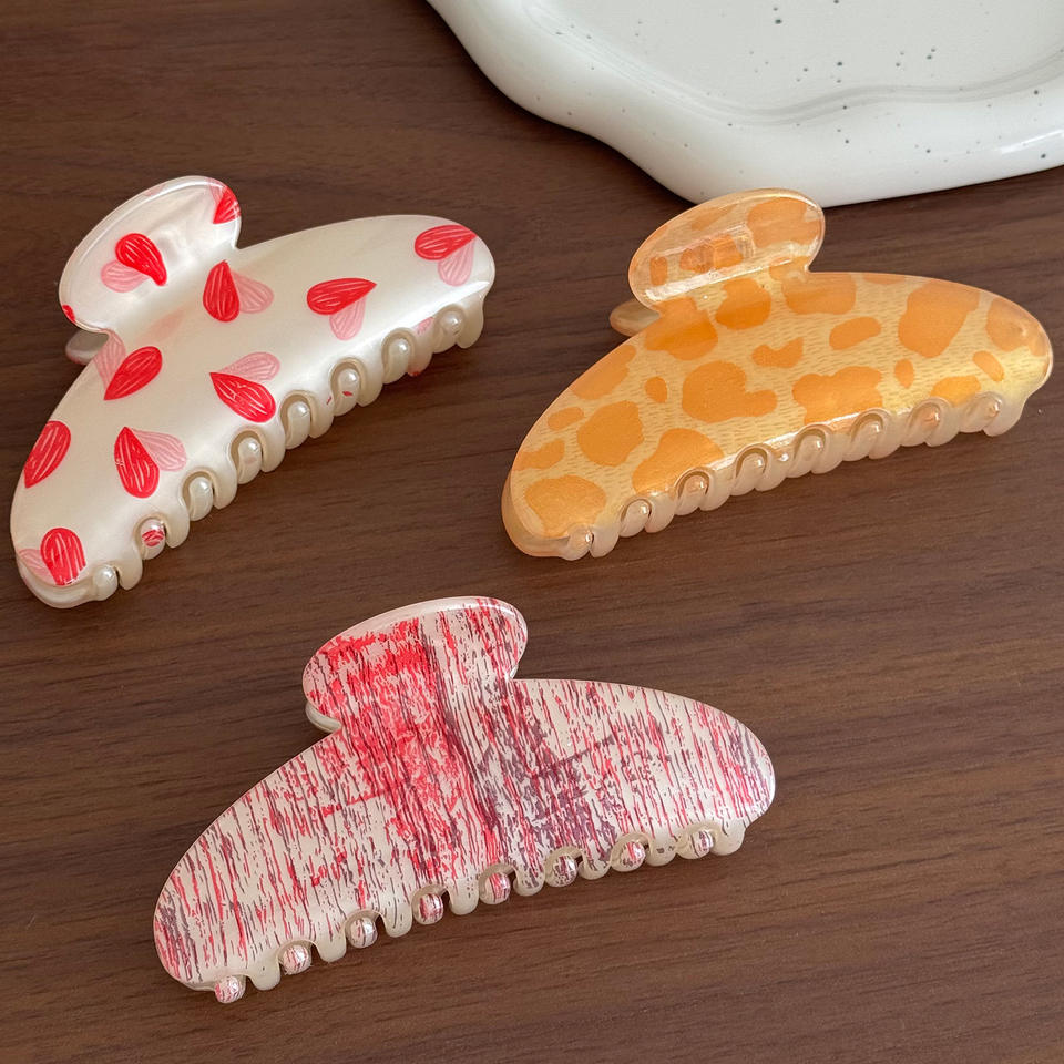 กิ๊บติดผมแฟชั่นขนาดใหญ่ ทำจากอะซิเตท สีสันสดใส ลายทางสำหรับผู้หญิง กิ๊บหนีบผมทรงหางม้า ลายดอกไม้สไตล์วินเทจ