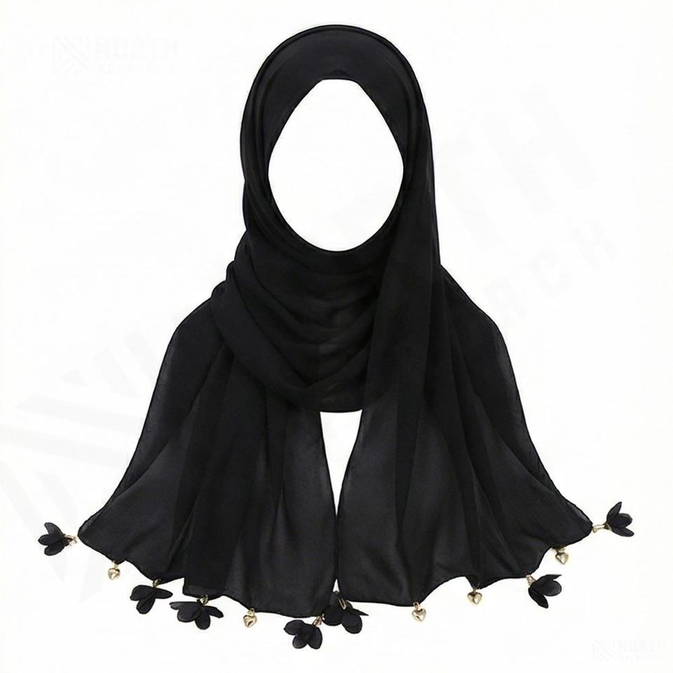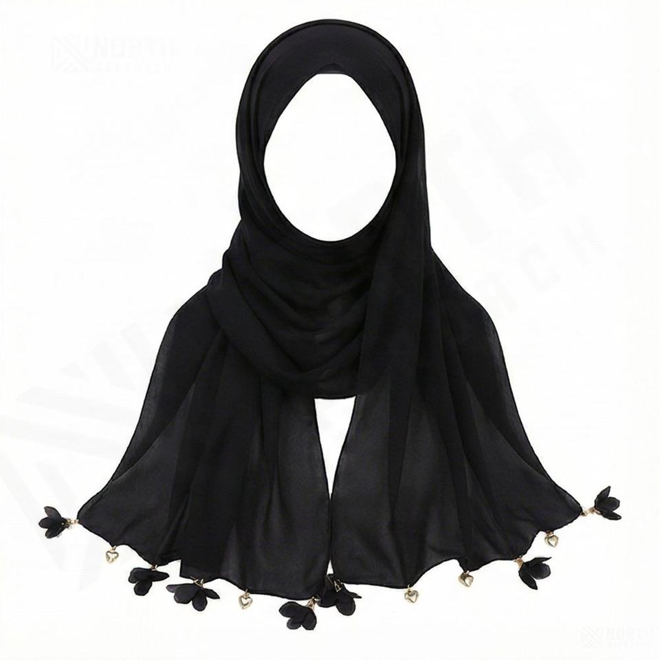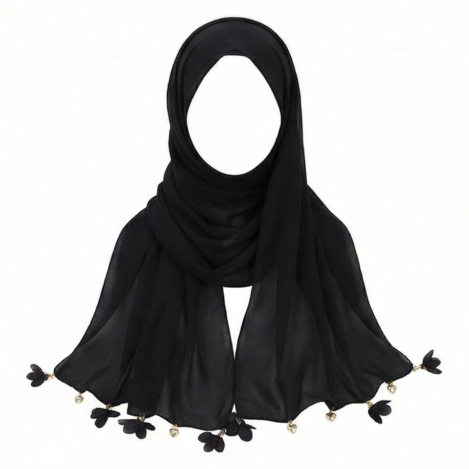 ผ้าพันคอแฟชั่นลายดอกไม้รูปหัวใจประดับพู่ห้อย ผ้าชีฟองพรีเมียม ขนาด 70x170 ซม. ผ้าคลุมศีรษะสำหรับผู้หญิง ผ้าชีฟองเรียบเนียน นุ่มสบาย ทันสมัย