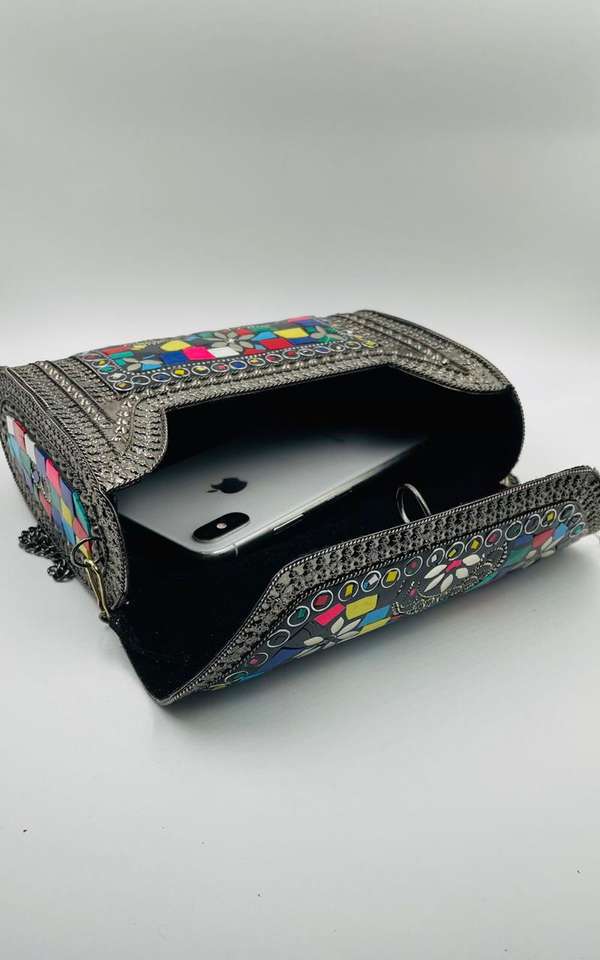 กระเป๋าถือแฟชั่นดีไซน์เนอร์และร้านเครื่องประดับโลหะพร้อมจำหน่ายจำหน่ายกระเป๋าโมเสคแบบชนเผ่าพร้อมลายลูกอม