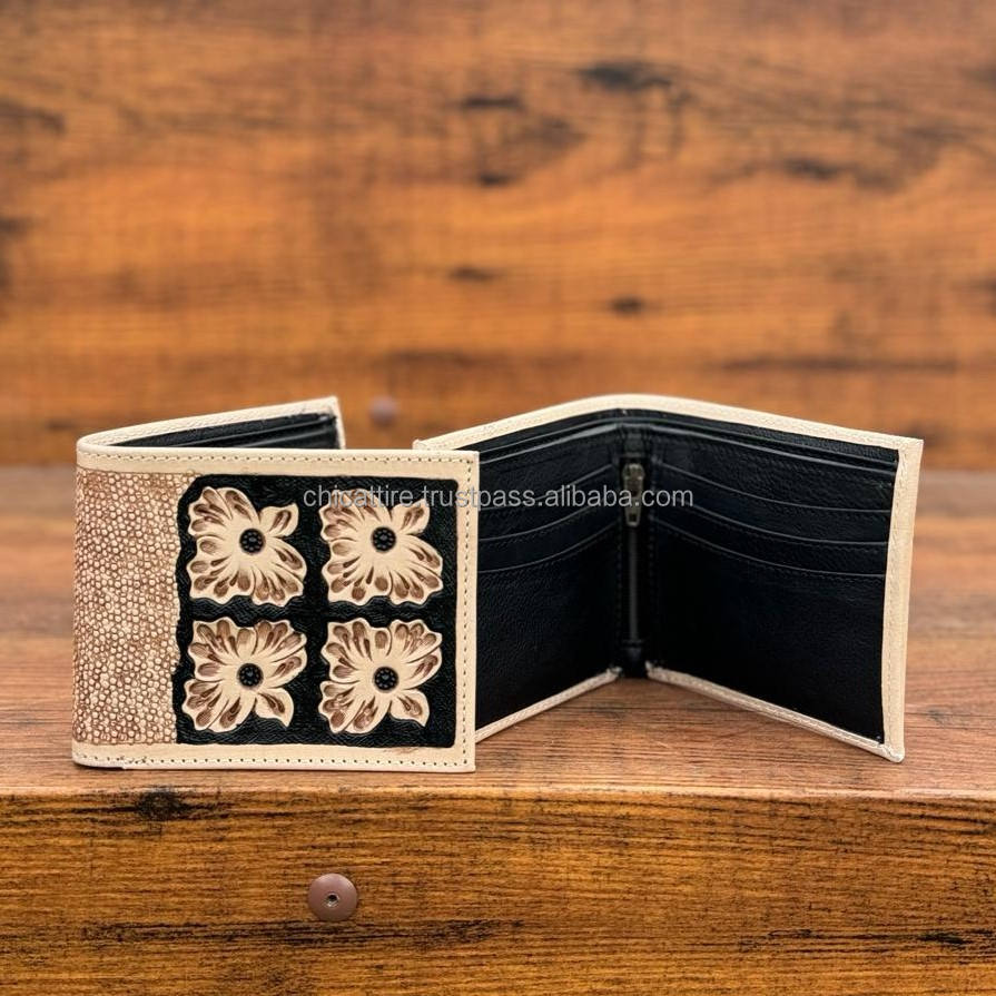 กระเป๋าสตางค์ใบสั้นแบบมีซิปของผู้ชายทำจากหนังแท้ลายตะวันตกแบบแฟชั่นถือกระเป๋าใส่บัตรสำหรับเป็นของขวัญ