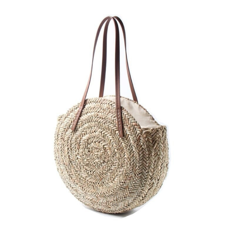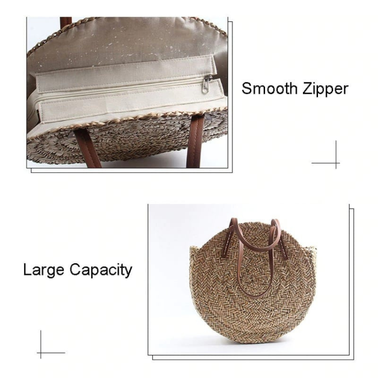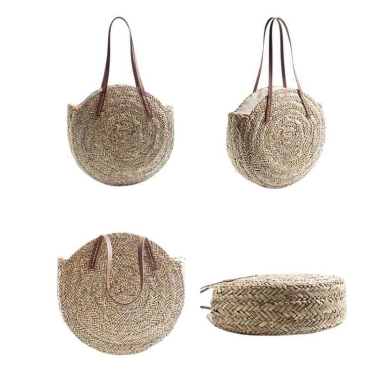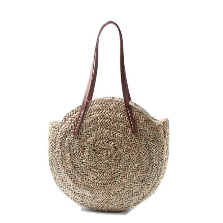 กระเป๋าฟางทรงกลมทำมือสไตล์คลาสสิก, กระเป๋าชายหาดสานฟางขนาดใหญ่, กระเป๋าสะพายไหล่ขายส่ง