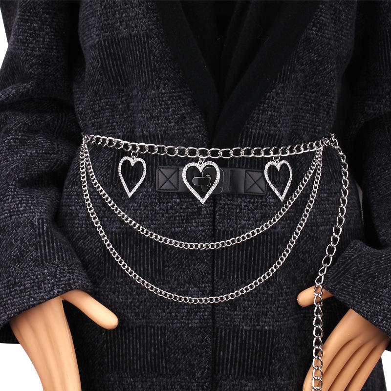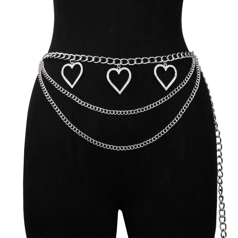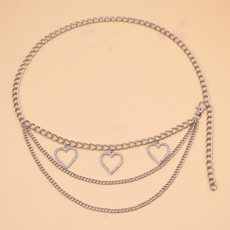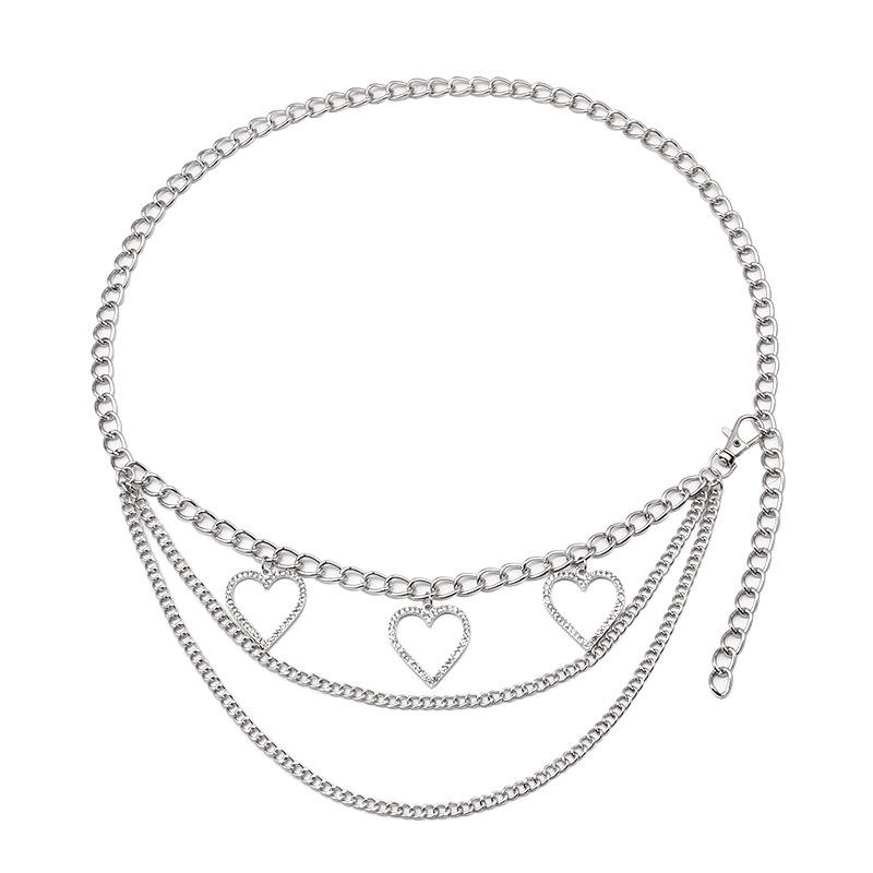 White diamond-encrusted heart-shaped multi-layered waist chain