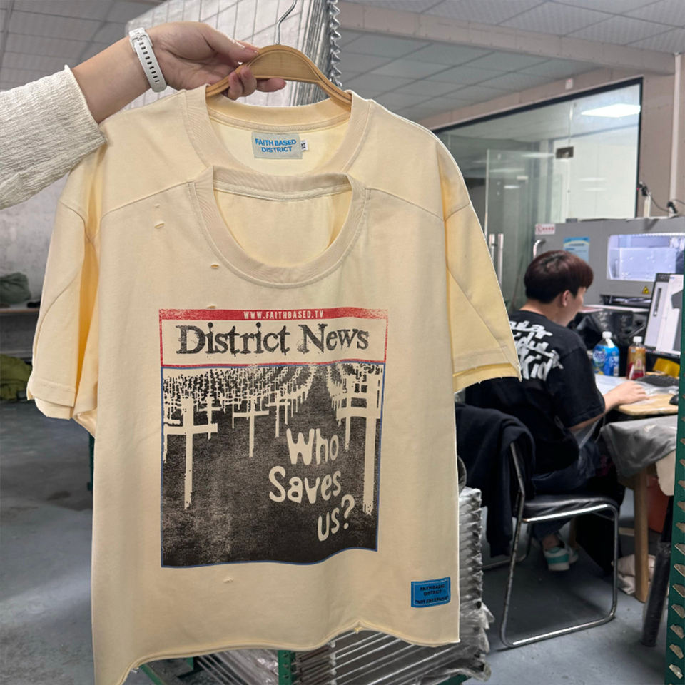 Fashion Heavy Cotton Mock Neck Top T Shirt Puff Printed Tee T Shirt For Wholesale custom logo