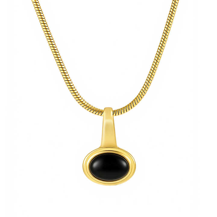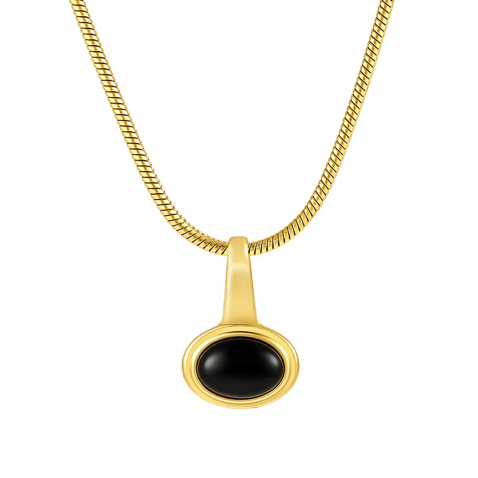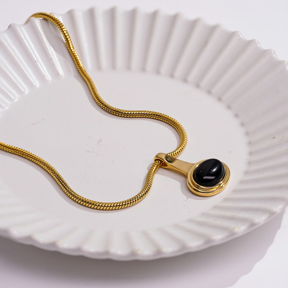 สร้อยคอแฟชั่นคุณภาพสูงสไตล์วินเทจ จี้หินธรรมชาติสีดำ พร้อมสายสร้อยแบบกระดูกงู สำหรับผู้หญิง ขายส่งเครื่องประดับ รุ่น P253681