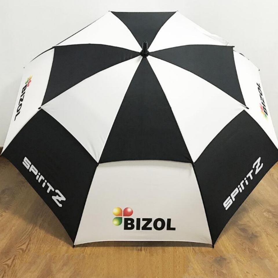 ร่มกอล์ฟคุณภาพสูงสั่งทำพิเศษ โลโก้สั่งทำ สองชั้น ผลิตในจีน ขนาดใหญ่ สำหรับโปรโมชั่น สำหรับเป็นของขวัญ พร้อมโลโก้