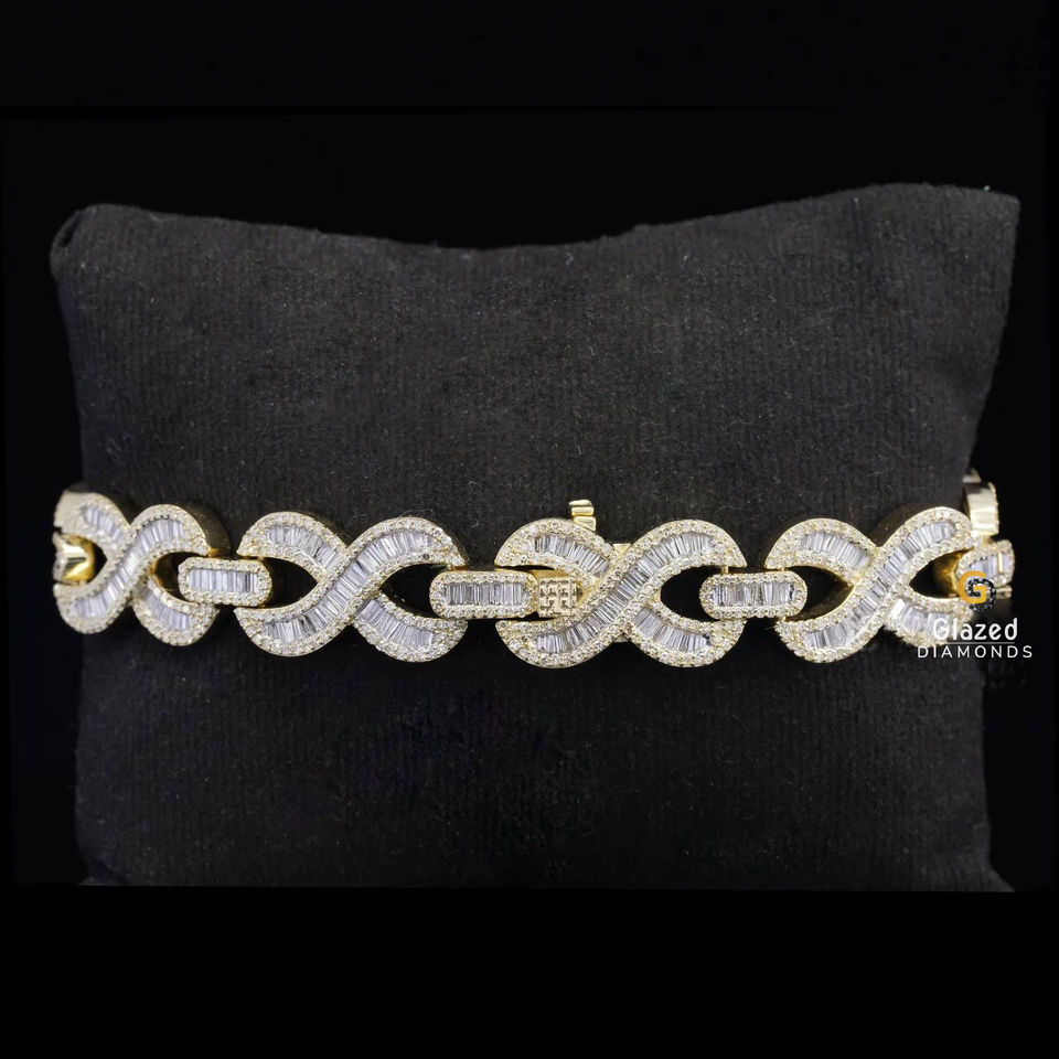 สร้อยข้อมือฮิปฮอปแฟชั่นทำจากเพชรโมอิส925สเตอร์ลิงทรงกลมและบาแกตต์ตัด