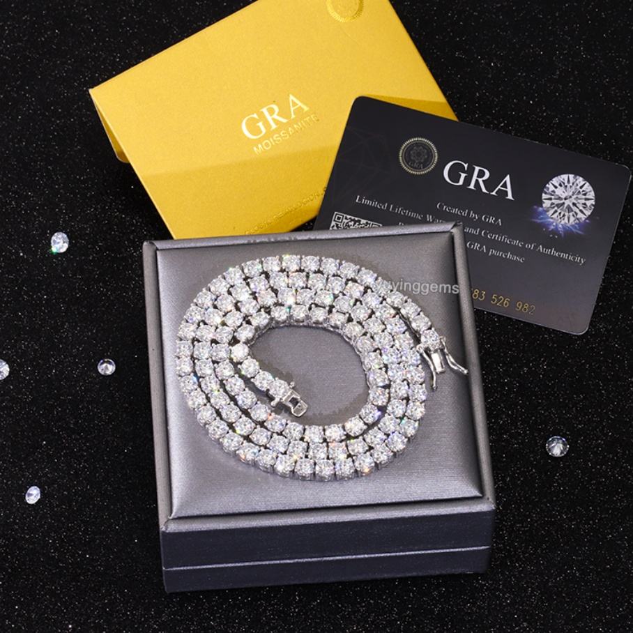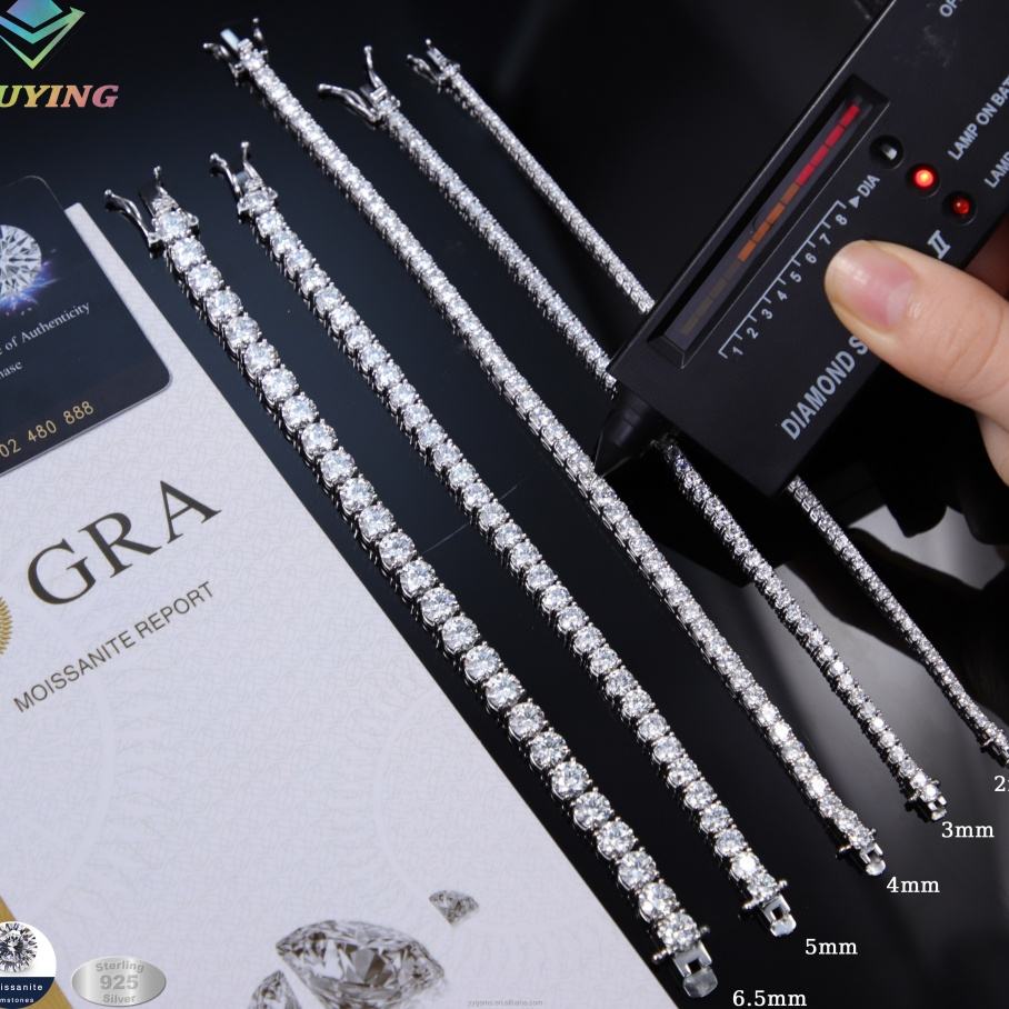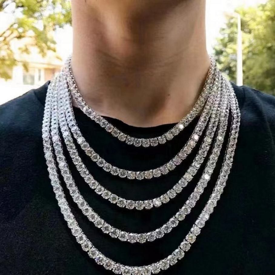 สร้อยเทนนิสแบบมอสซาไนต์ทรงกลม VVS ชุบทอง ความกว้าง 2 มม. 3 มม. 4 มม. 5 มม. สไตล์ฮิปฮอปแฟชั่น