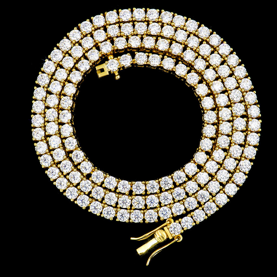 สร้อยคอเทนนิสแฟชั่นฮิปฮอปประดับเพชรโมอิสซาไนต์ VVS ขนาด 3 มม. ชุบทองคำขาว 925 เงินแท้ ผ่านการทดสอบเพชร สำหรับผู้ชาย