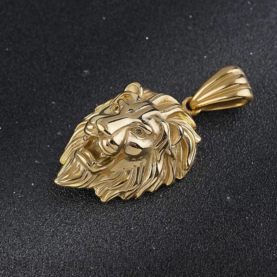 สร้อยคอจี้หัวสิงโตสแตนเลสสตีลชุบทอง 18k PVD สไตล์แฟชั่นฮิปฮอป ลายสัตว์ ขายดีปี 2024