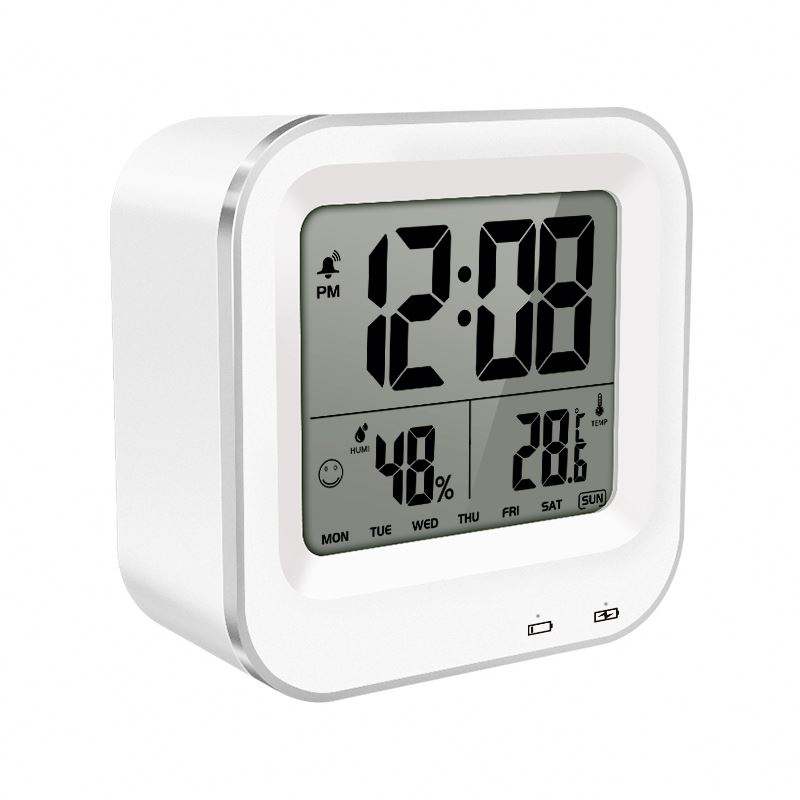 เทอร์โมมิเตอร์วัดอุณหภูมิและความชื้นแบบตั้งโต๊ะโรงแรม พร้อมนาฬิกาปลุกและไฟสัมผัส