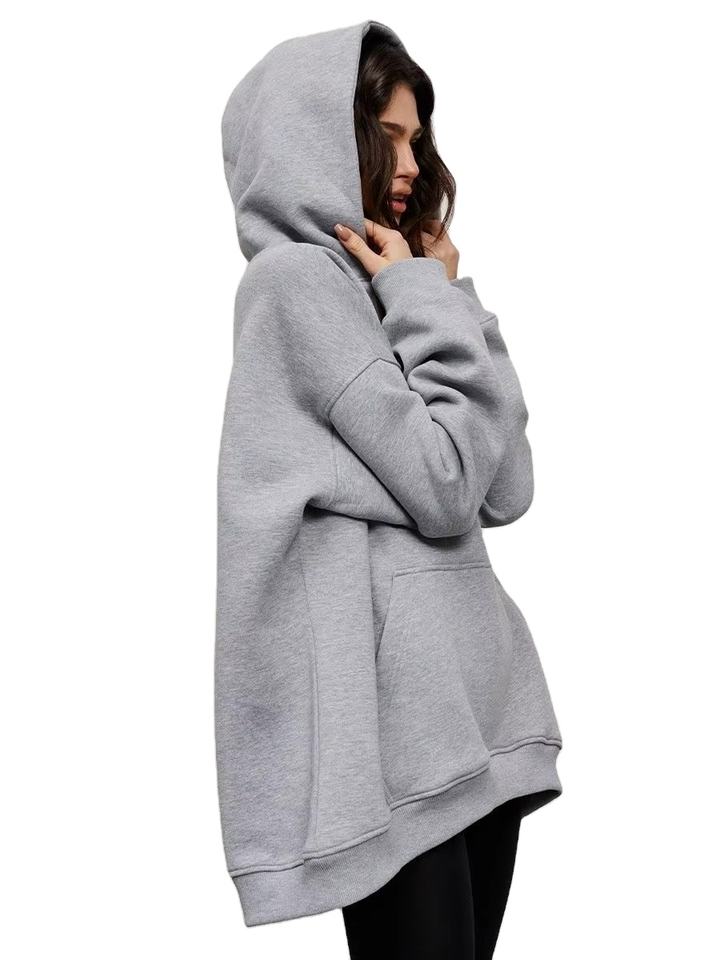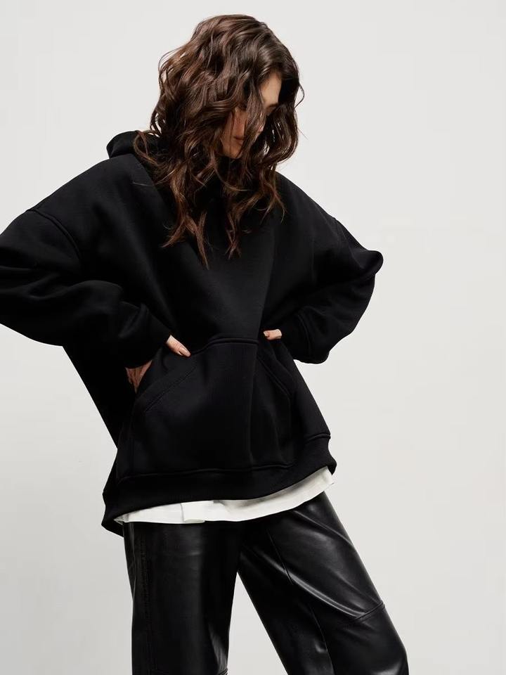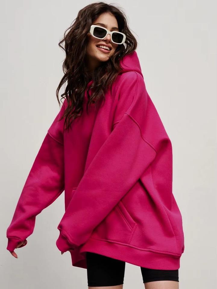 เสื้อกันหนาวขนแกะมีฮู้ดสำหรับผู้หญิงเสื้อสวมหัวขนาดใหญ่โอเวอร์ไซส์แฟชั่นฤดูหนาว
