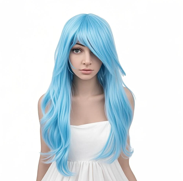 Fashion Hot Selling Long Blue Party Synthetic Sexy Curly Hair Wig for Women Wholesale Factory Direct Heat Resistant