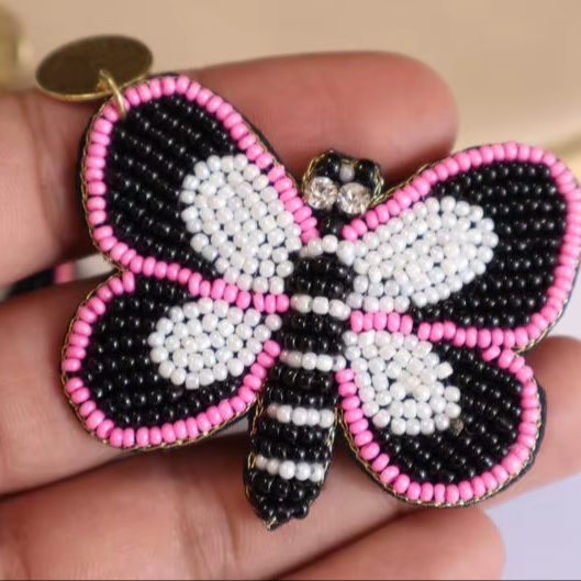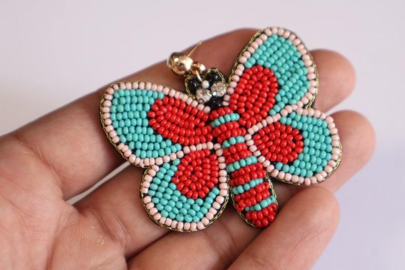 เครื่องประดับแฟชั่นต่างหูลูกปัดปักจากอินเดียต่างหูทำด้วยมือสำหรับผู้หญิงและเด็กผู้หญิงดูคลาสสิกหลากสี