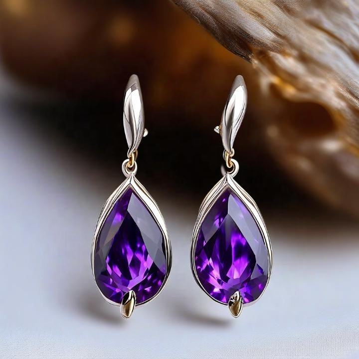 ต่างหูแฟชั่นสตรีพร้อมเพทายเงินและหินสีฟ้าเครื่องประดับสำหรับงานแต่งงานสำหรับผู้หญิง