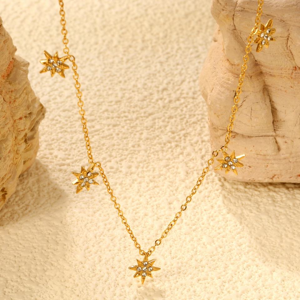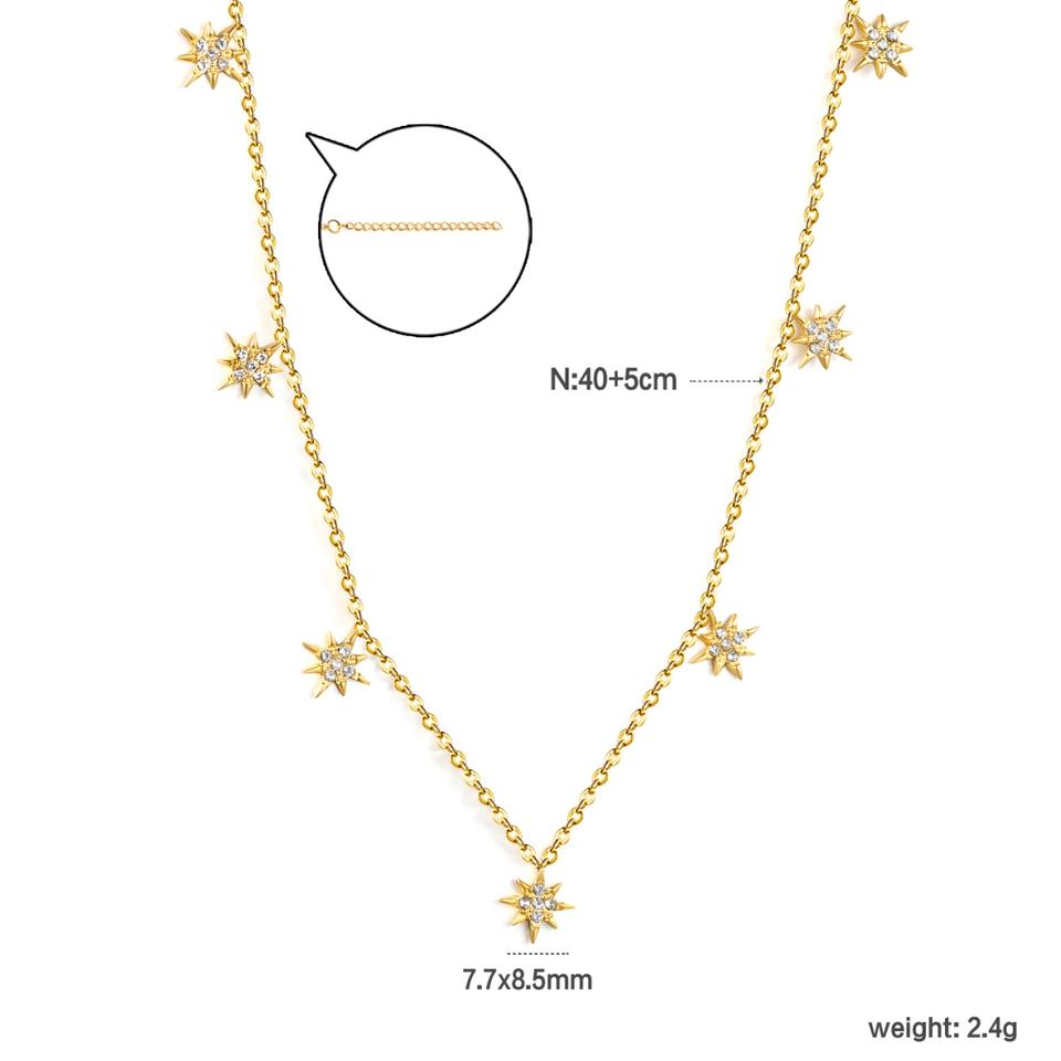 Fashion Jewelry 18K Gold Plated Pentastar Necklace Dainty Link Chain Zirconia Stainless Steel Jewelry Star Necklace for Women