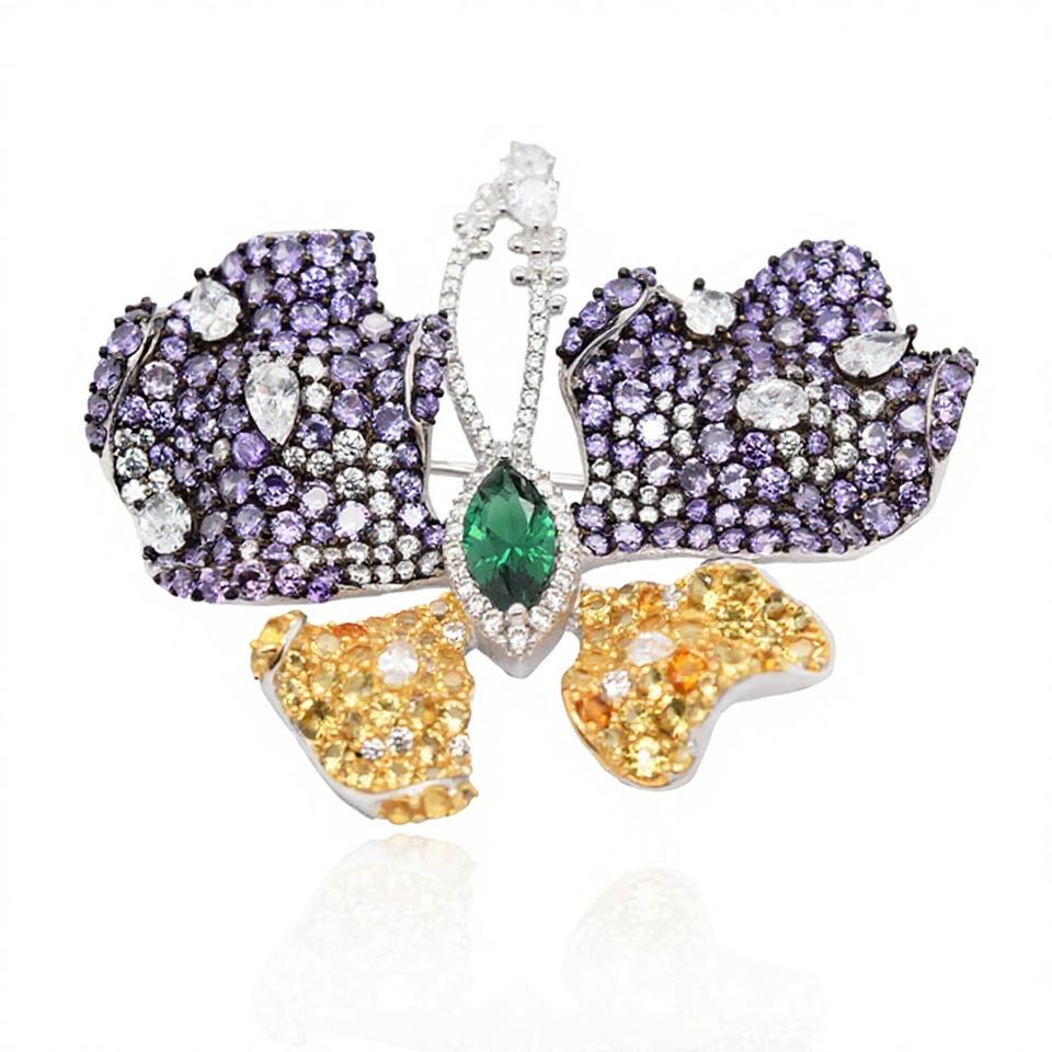 เครื่องประดับแฟชั่น 925 เงินสเตอร์ลิงเพทายผีเสื้อที่ละเอียดอ่อนหรูหราเข็มกลัดสำหรับผู้หญิงงานแต่งงานของขวัญปาร์ตี้หมั้น