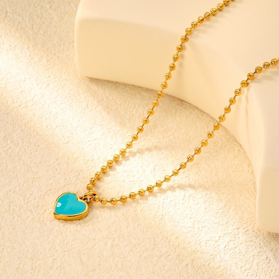 สร้อยคอจี้รูปดาวทรงกลมประดับเหรียญแฟชั่น สแตนเลสชุบทอง 18K พร้อมจี้รูปหัวใจสีน้ำเงินประดับลูกปัด สำหรับผู้หญิง