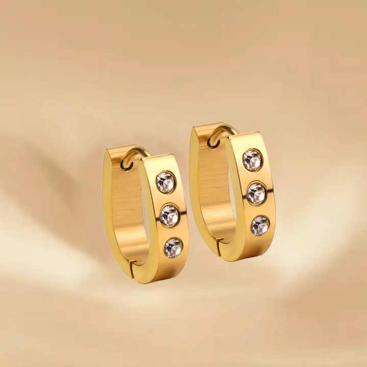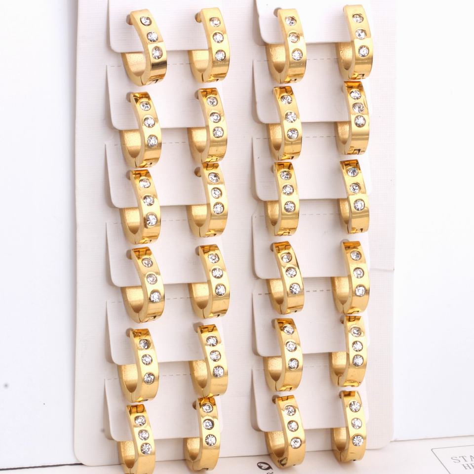 ผู้ออกแบบเครื่องประดับแฟชั่น ขายส่งเพชร ต่างหูห่วงแบบ Huggie ชุบทอง 18k ทำจากสแตนเลสสตีล สำหรับผู้หญิง