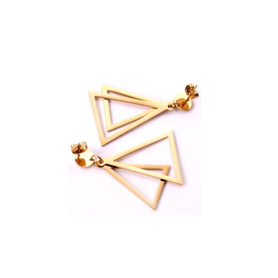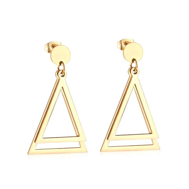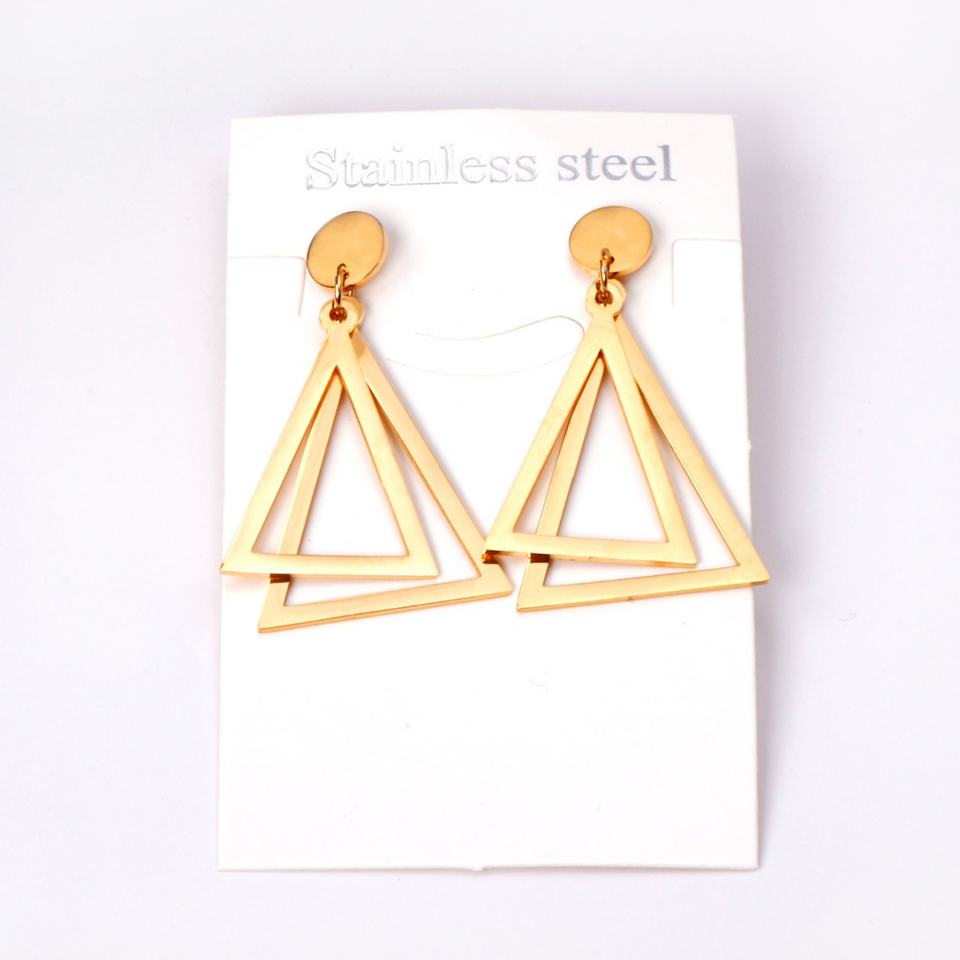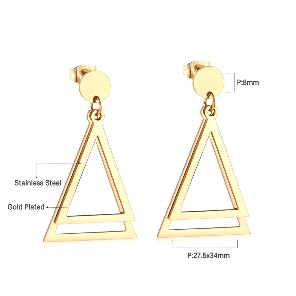 ต่างหูแฟชั่นรูปสามเหลี่ยมแบบกลวง ป้องกันการแพ้ ชุบทอง 18k PVD บนสแตนเลสสตีล ต่างหูทรงหยดน้ำรูปเดลต้าคู่ สำหรับผู้หญิง