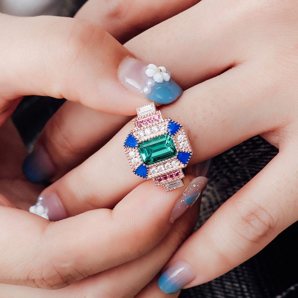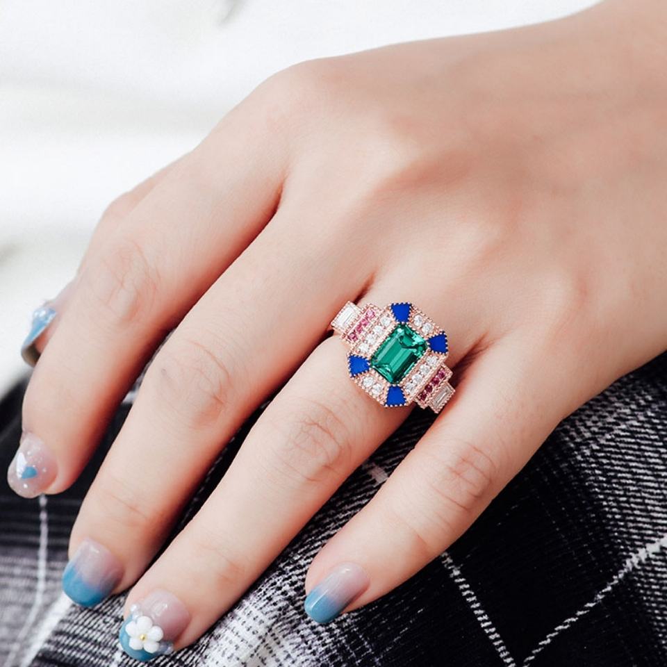 แหวนแฟชั่นสไตล์อินเดียสำหรับผู้ชาย แหวนมรกตสีสันสดใส แหวนมรกตเพาะเลี้ยงสำหรับผู้หญิง แหวนหมั้นสไตล์วินเทจ ปรับแต่งได้