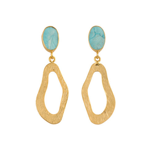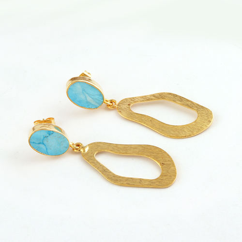 ต่างหูพลอยดูดิบต่างหูสีฟ้าเทอร์ควอยซ์สีฟ้าแบบแฟนซีพร้อมแปรงเสร็จสิ้นต่างหูชุบทอง18K