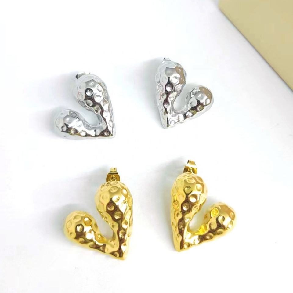 เครื่องประดับแฟชั่นสไตล์มินิมอล ขายส่ง ต่างหูแบบติดหูรูปหัวใจลายตอก วัสดุสแตนเลสสตีลเคลือบทอง 18K PVD สำหรับผู้หญิง