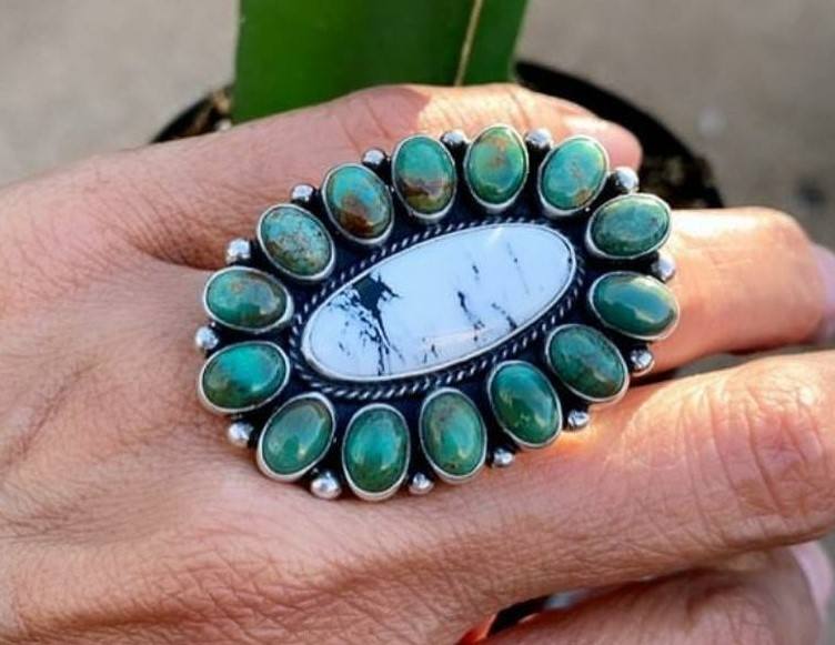 คีย์เวิร์ด:แหวนเงินอัญมณี howlite & chrysocolla ทำมือ