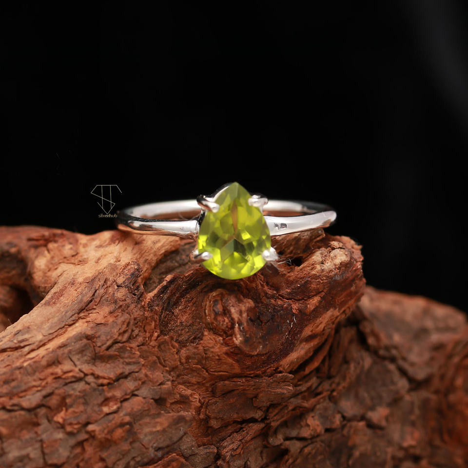 เครื่องประดับแฟชั่นแหวนเพอริดอทที่ตัดรูปลูกแพร์ธรรมชาติ925เงินแท้แหวนเพอริดอทเครื่องประดับจากอินเดีย