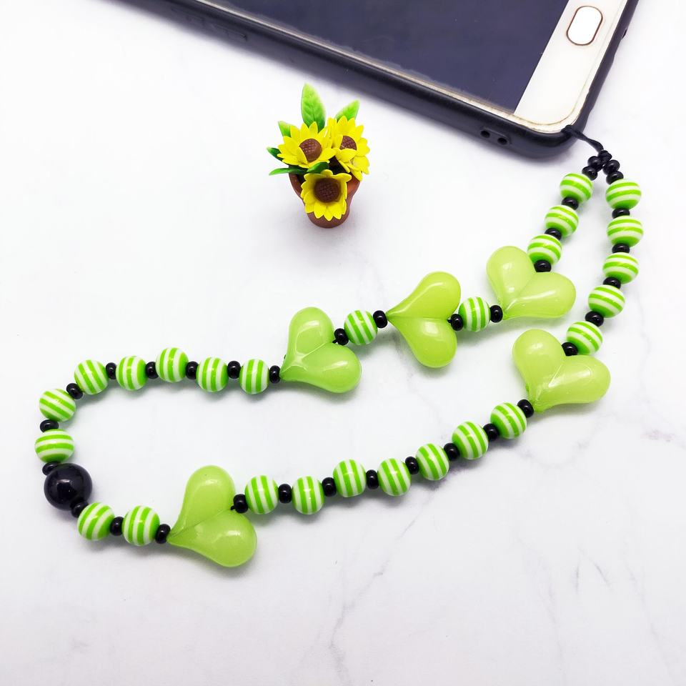 เครื่องประดับแฟชั่นสายคล้องโทรศัพท์มือถือลูกปัดลายทางสีชมพูสีเขียวสีฟ้าชื่อผลิตภัณฑ์