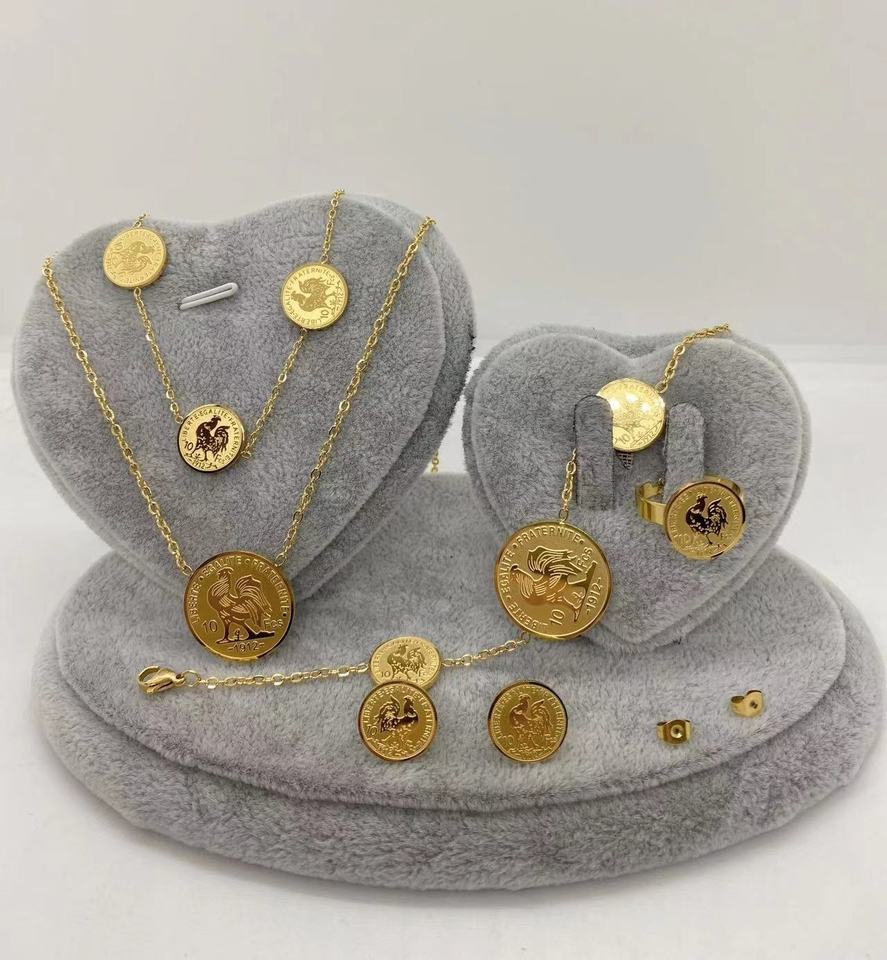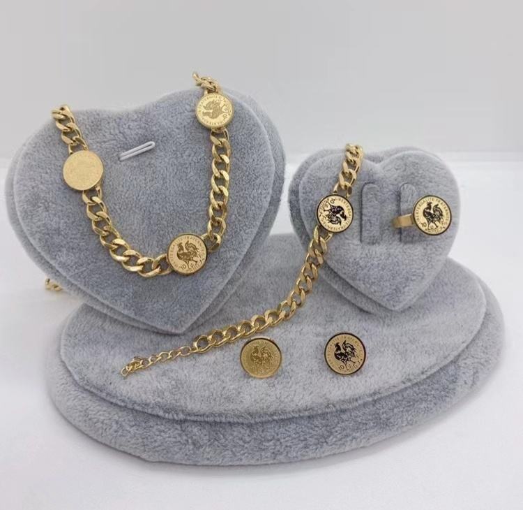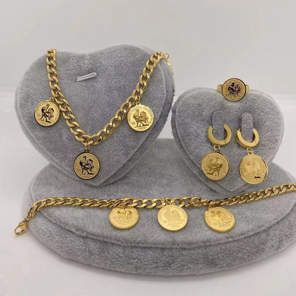 ชุดเครื่องประดับแฟชั่นสร้อยคอดีไซน์รูปหัวไก่ชุบทอง18K สำหรับผู้หญิงต่างหูแหวนเครื่องประดับสุดหรู