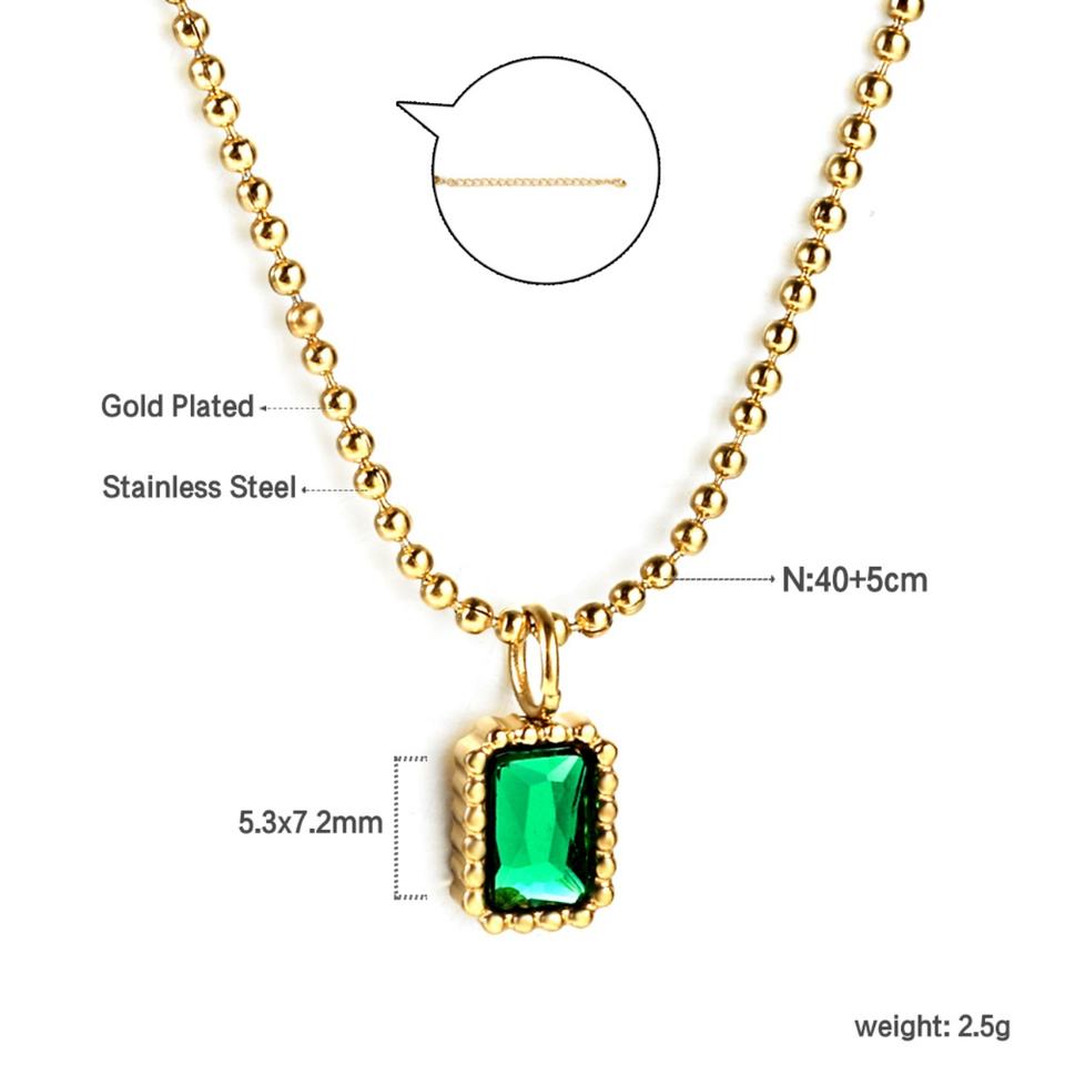 สร้อยคอแฟชั่นสแตนเลสประดับเพทายสีเขียว หลายสไตล์ ประดับมรกต ชุบทอง 18k