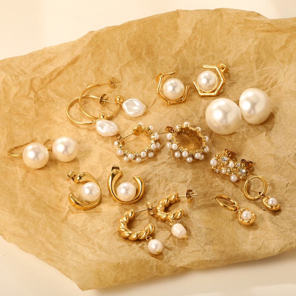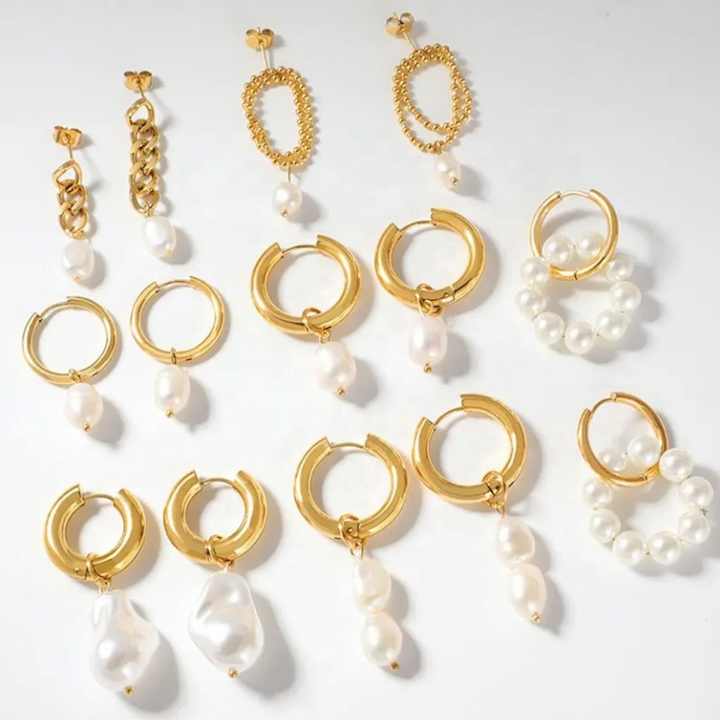 เครื่องประดับแฟชั่นขายส่ง ต่างหูห้อยประดับเพชรซิคอนทรงเรขาคณิต ชุบทอง 18K ต่างหูห่วงสแตนเลสสำหรับผู้หญิง