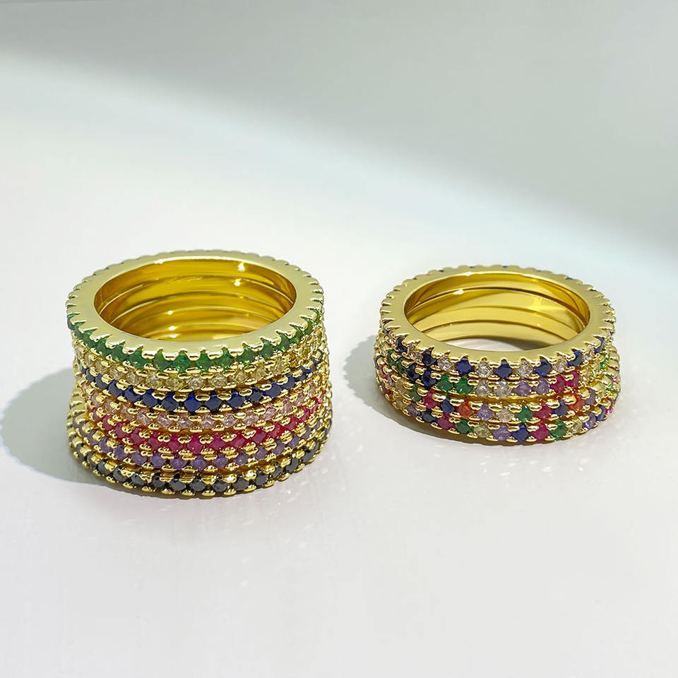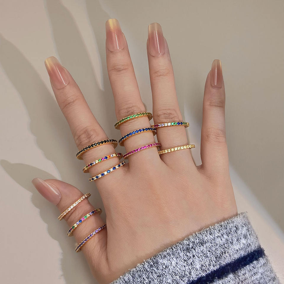 แหวนแฟชั่นขายส่งแบบกำหนดเอง ประดับเพชร CZ หลากสี ดีไซน์คลาสสิก บางเฉียบ สำหรับผู้หญิง ชุบทอง 18K