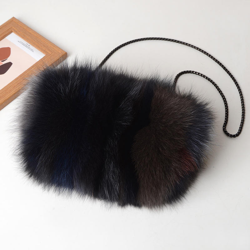 กระเป๋าแฟชั่นผู้หญิงกระเป๋าขนสัตว์มีซิปกระเป๋าขนสุนัขจิ้งจอกสีตัดกันกระเป๋าผู้หญิงขนเฟอร์