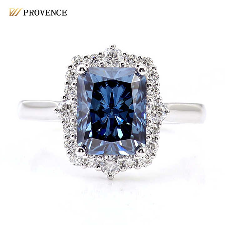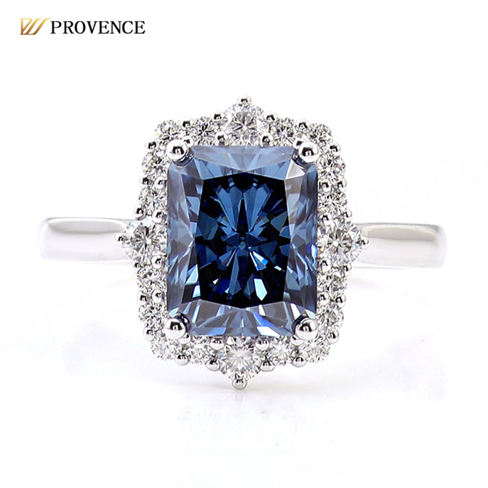 Fashion Ladies Diamond Ring Wedding Ring 3 Carat Blue Green Radiant Moissanite Ring Haute Couture 18k White Gold Cluster Ring