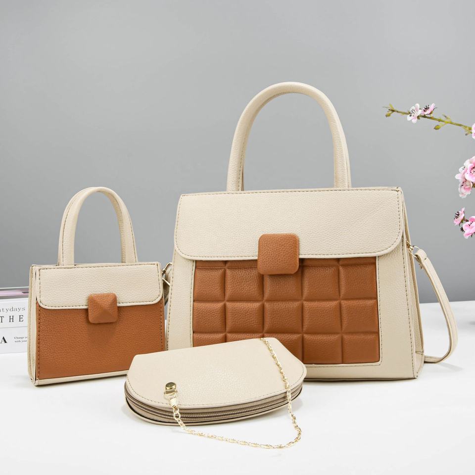 กระเป๋าถือแฟชั่นผู้หญิง ดีไซน์เนอร์แบรนด์ ราคาถูก กระเป๋าถือสุภาพสตรี ชุดกระเป๋าถือผู้หญิง วัสดุ PU ชุด 3 ชิ้นใน 1 ชุด