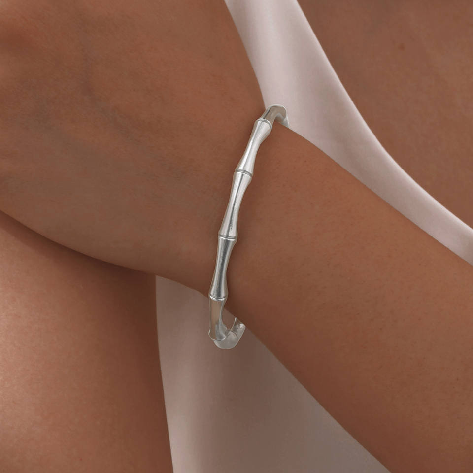 สร้อยข้อมือสแตนเลสสแตนเลสสำหรับสุภาพสตรีแฟชั่นสร้อยข้อมือไม้ไผ่รูปตัว C สีทองเครื่องประดับสำหรับฤดูร้อน