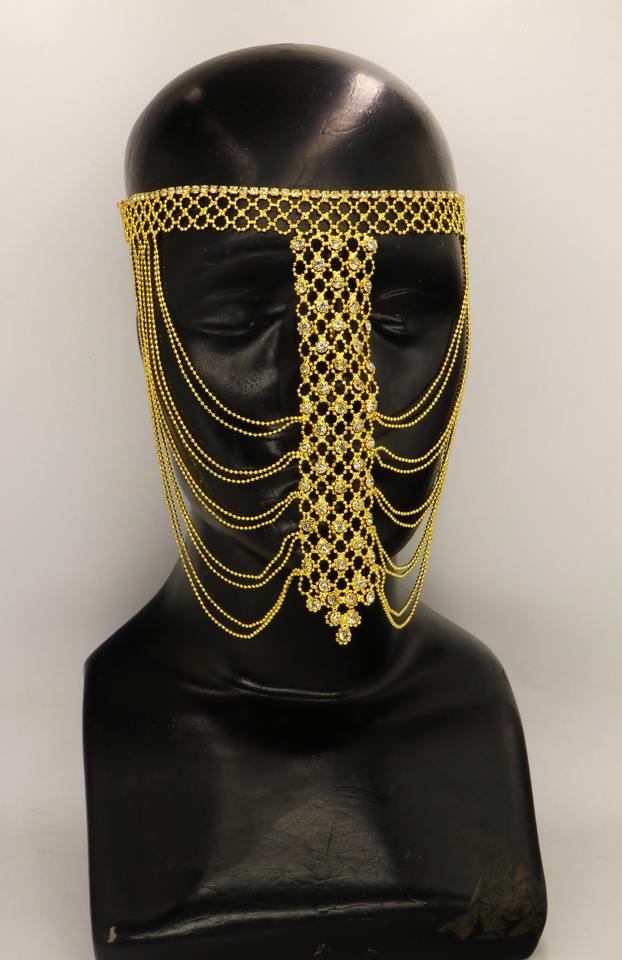 ผ้าคลุมหน้าแฟชั่นสำหรับงานแต่งงานสำหรับผู้หญิงหน้ากากพลอยเทียมหินสีประดับพลอยเทียมประดับลูกปัดมีพู่ห้อยประดับอัญมณีสำหรับงานปาร์ตี้