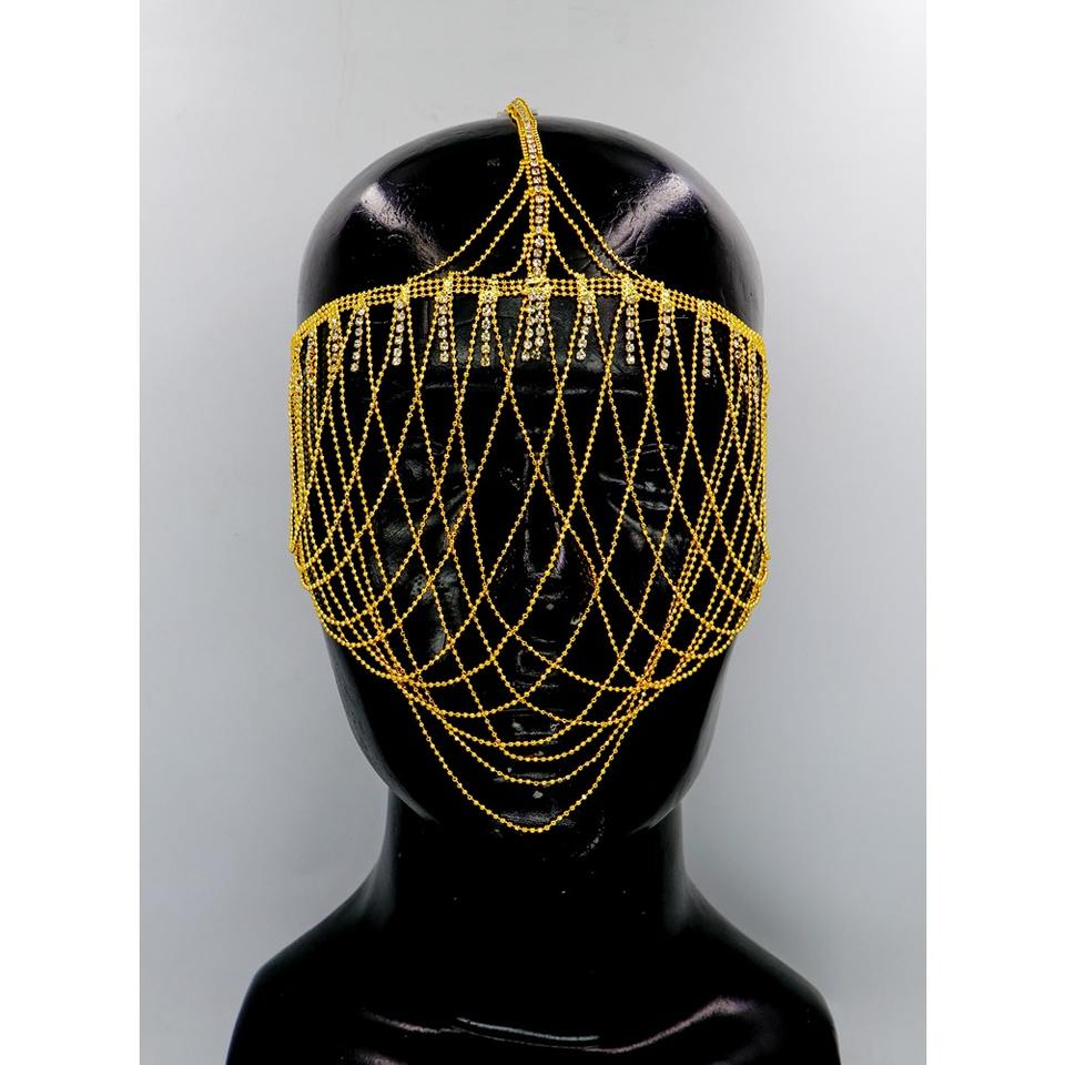 ผ้าคลุมหน้าแฟชั่นสำหรับงานแต่งงานสำหรับผู้หญิงหน้ากากพลอยเทียมหินสีประดับพลอยเทียมประดับลูกปัดมีพู่ห้อยประดับอัญมณีสำหรับงานปาร์ตี้