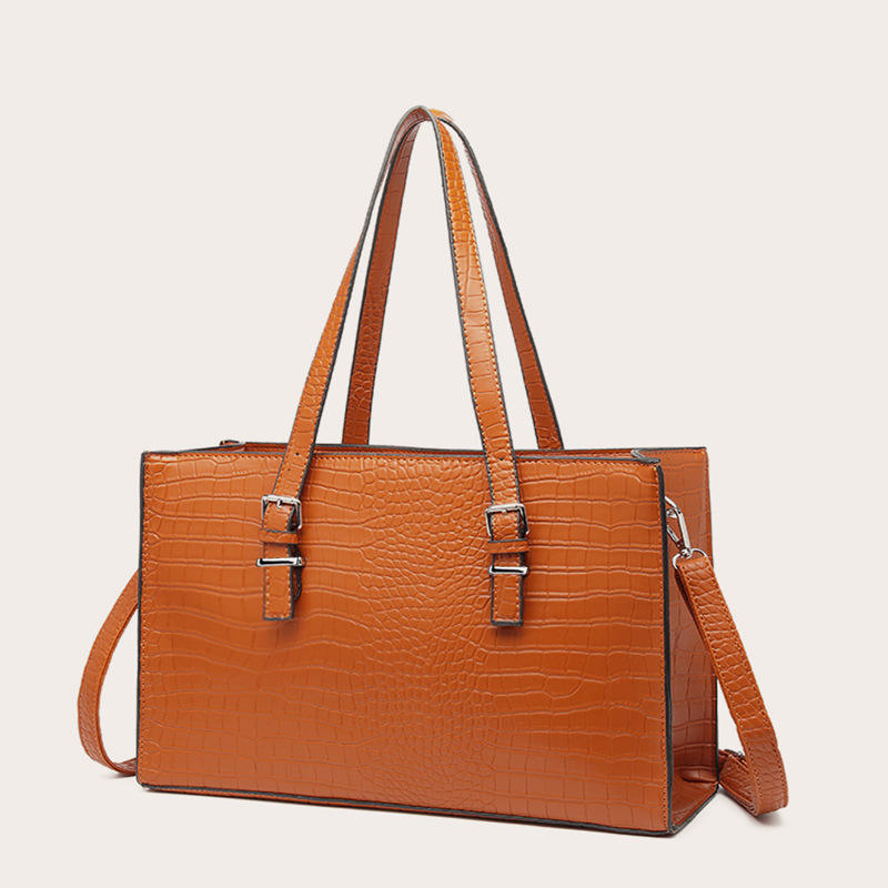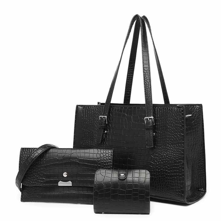 กระเป๋าถือสะพายไหล่แฟชั่นขนาดใหญ่ หนัง PU ดีไซน์สำหรับผู้หญิง ชุดกระเป๋าถือ 3 ชิ้น
