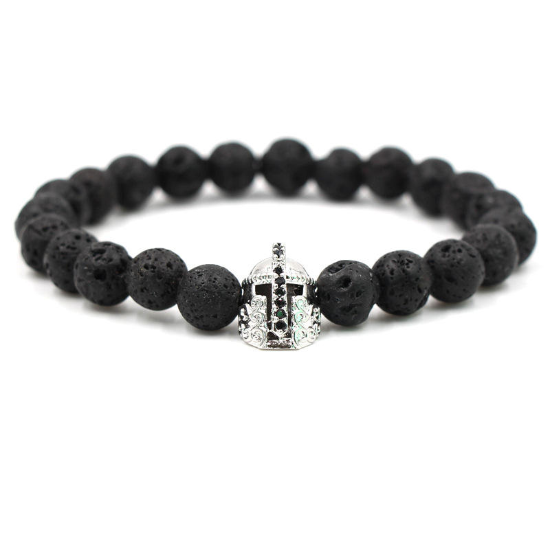 กำไลข้อมือหินลาวาสำหรับผู้ชาย,กำไลข้อมือลูกปัดแบบถักเปียหมวกกันน็อคอัศวินคุณภาพสูง