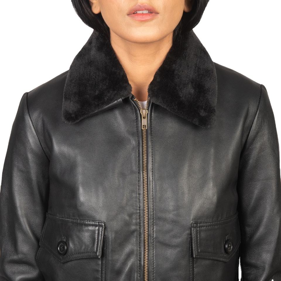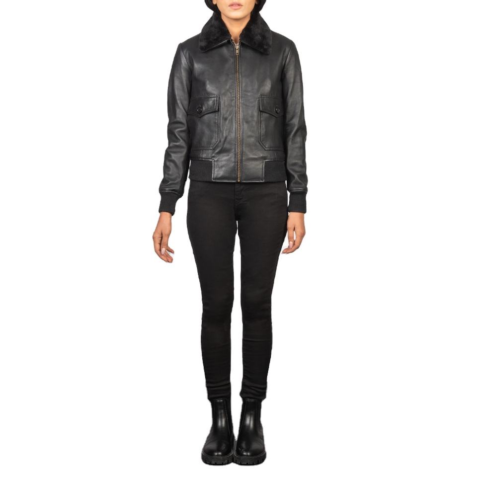 แจ็คเก็ตหนังแฟชั่น ทำจากหนังแกะหรือหนังแพะแท้ พร้อมส่วนประกอบขนสัตว์ที่ถอดออกได้ และปลายแขนถักแบบริบ