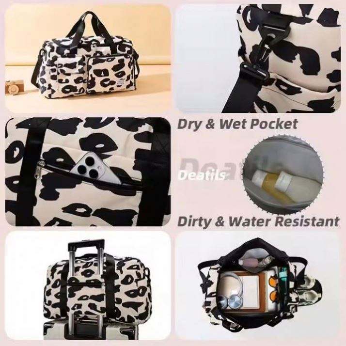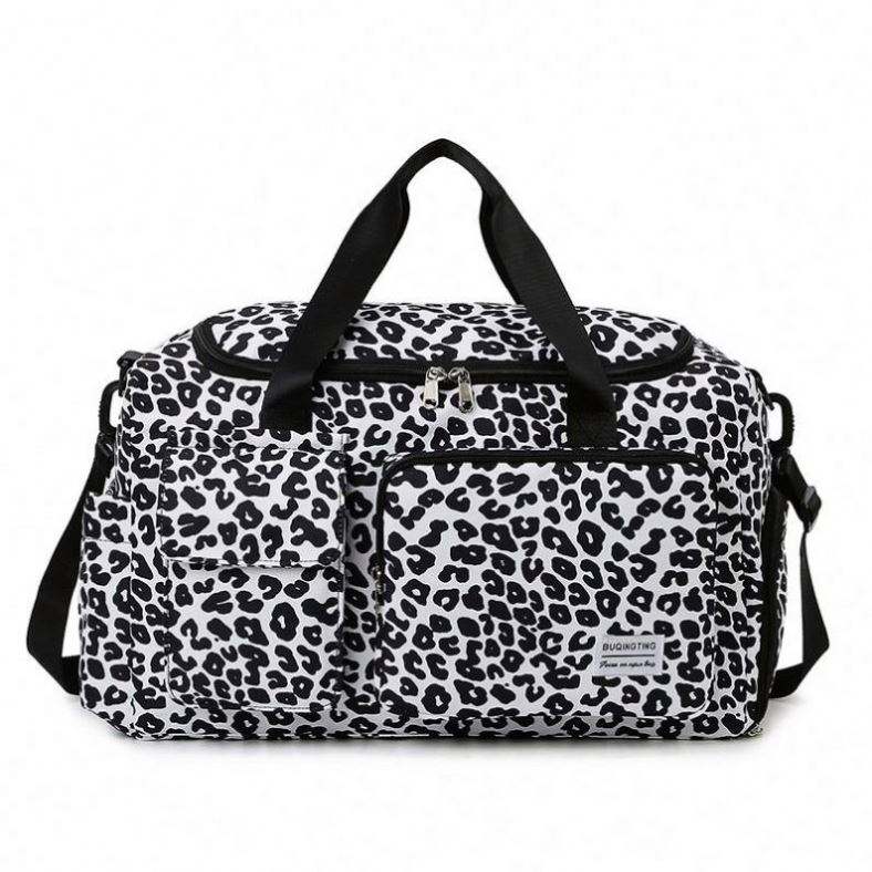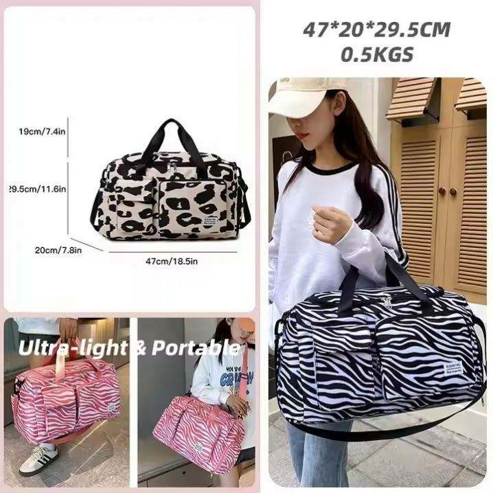 กระเป๋าเดินทางลายเสือดาวแฟชั่น ขนาดใหญ่ กันน้ำ สำหรับออกกำลังกาย ท่องเที่ยว พร้อมช่องใส่รองเท้า
