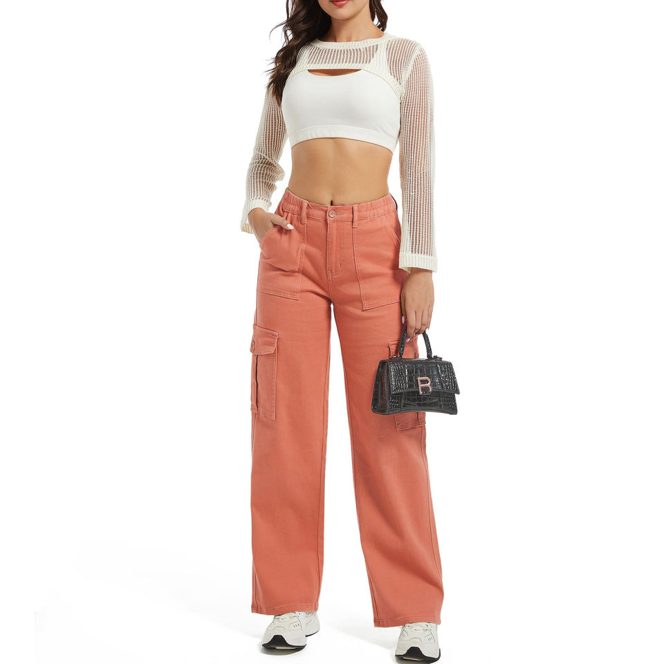 กางเกงคาร์โก้ลำลองเอวกลาง น้ำหนักเบา ใส่สบาย สำหรับผู้หญิง ผ้าฝ้าย 100% สไตล์สตรีทแวร์
