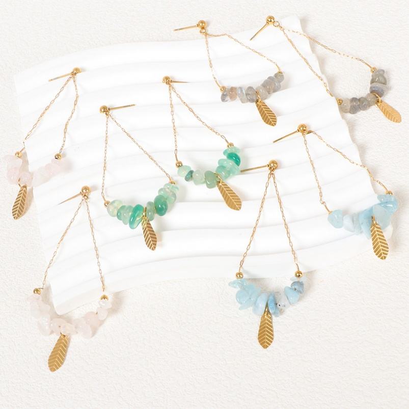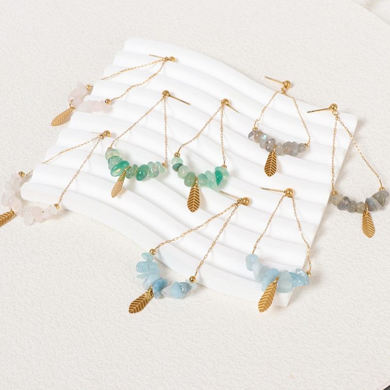 แฟชั่นหรูหราวินเทจ18K ทอง PVD จี้ใบลูกปัดสแตนเลสต่างหูเครื่องประดับ unisex เครื่องประดับของขวัญ