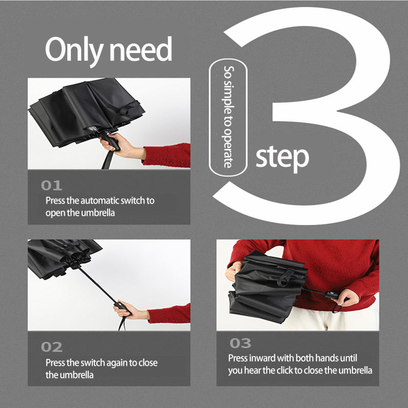 ร่มพับสามตอนอัตโนมัติเต็มรูปแบบ ทำจากไนลอน พิมพ์โลโก้แบรนด์ได้ ขนาดกะทัดรัด หรูหรา สำหรับเป็นของขวัญทางธุรกิจ พร้อมกระเป๋า