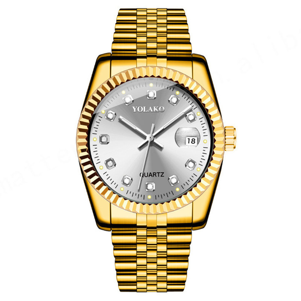 Fashion Luxury Business Cartoon Golden Quartz Watch Couple Stainless Steel Silicone Band Calendar Citizen Movement Wrist Watch